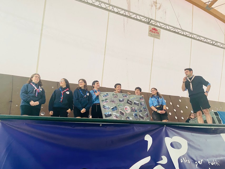 Consegnati i riconoscimenti ai capi che nel corso dell’ultimo anno hanno conseguito la Nomina a Capo o che hanno iniziato un servizio come formatori, sono saliti sul palco del PalaCep alcuni degli esploratori e delle guide che hanno vissuto lo scorso Jamboree in West Virginia per dare testimonianza del percorso dell’ultimo anno insieme e presentare attraverso un video la loro avventura.