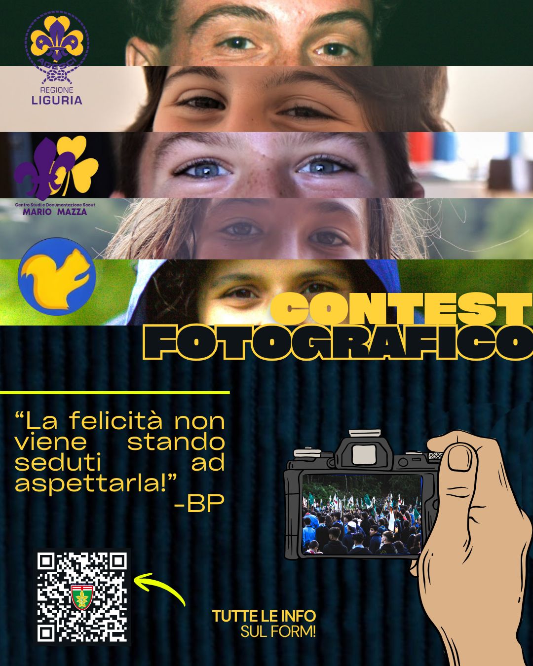 Agesci Liguria, insieme al Centro Studi “Mario Mazza” e alla Cooperativa “Lo Scoiattolo”, lancia un contest fotografico dedicato a tutti gli scout liguri (ragazzi & capi) che vogliono raccontare, attraverso le immagini, la felicità vissuta in cammino: “La felicità non viene stando seduti ad aspettarla! (B.P.)”