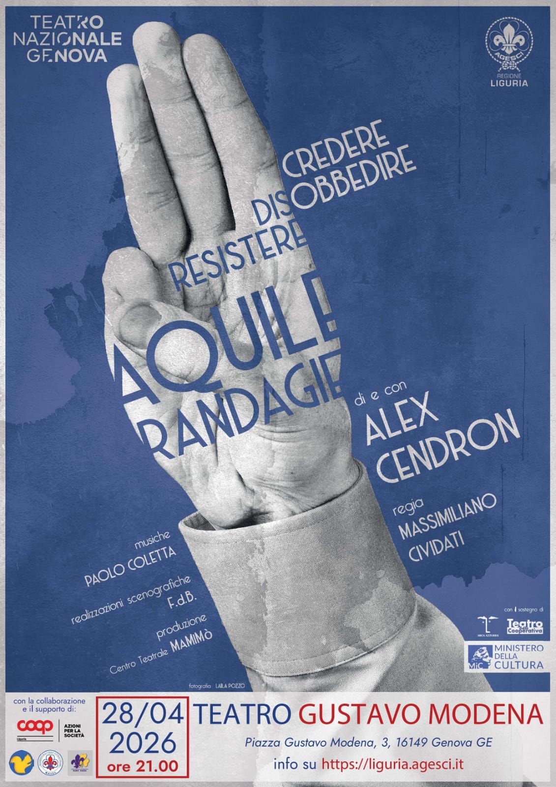 L’appuntamento è per il 28 aprile h.21.00 al Teatro Modena di Genova. Info di prenotazione disponibili qui: https://www.teatronazionalegenova.it/eventi/2025-2026/aquile-randagie.htm