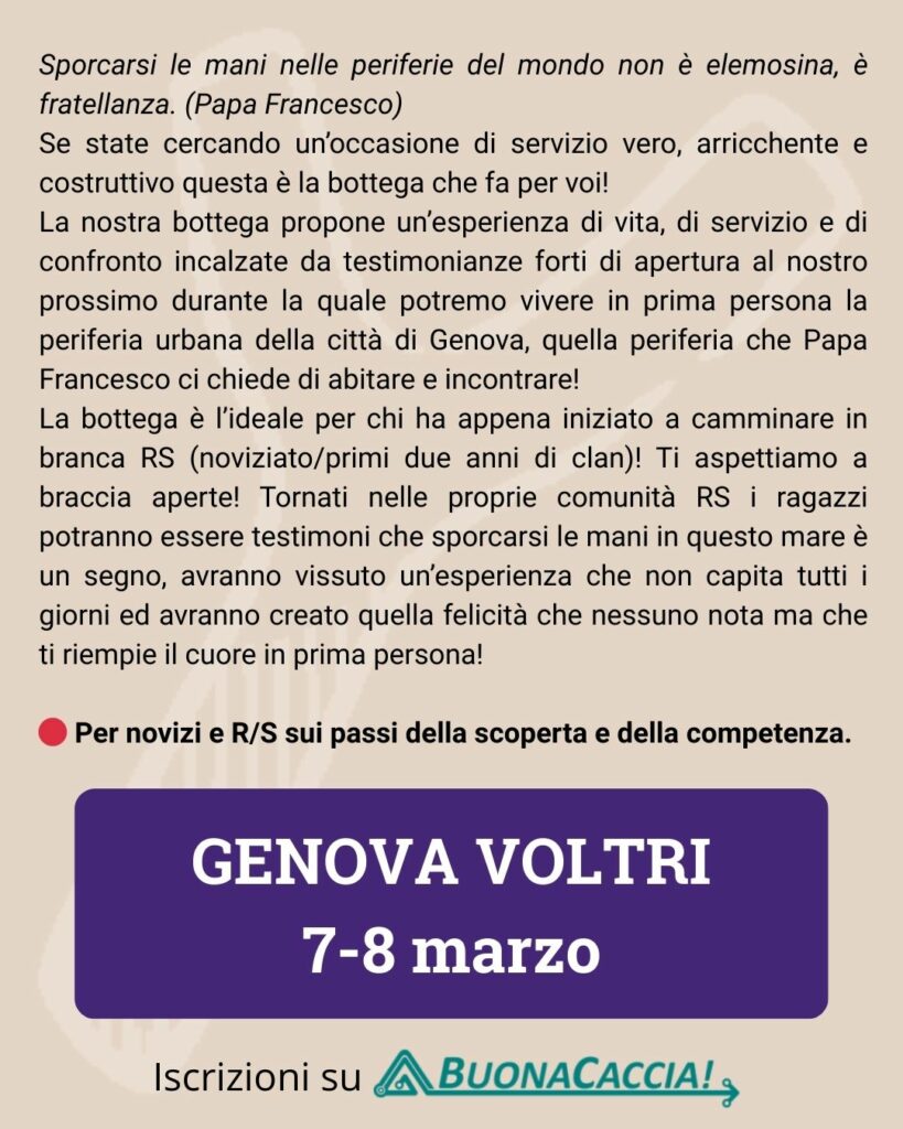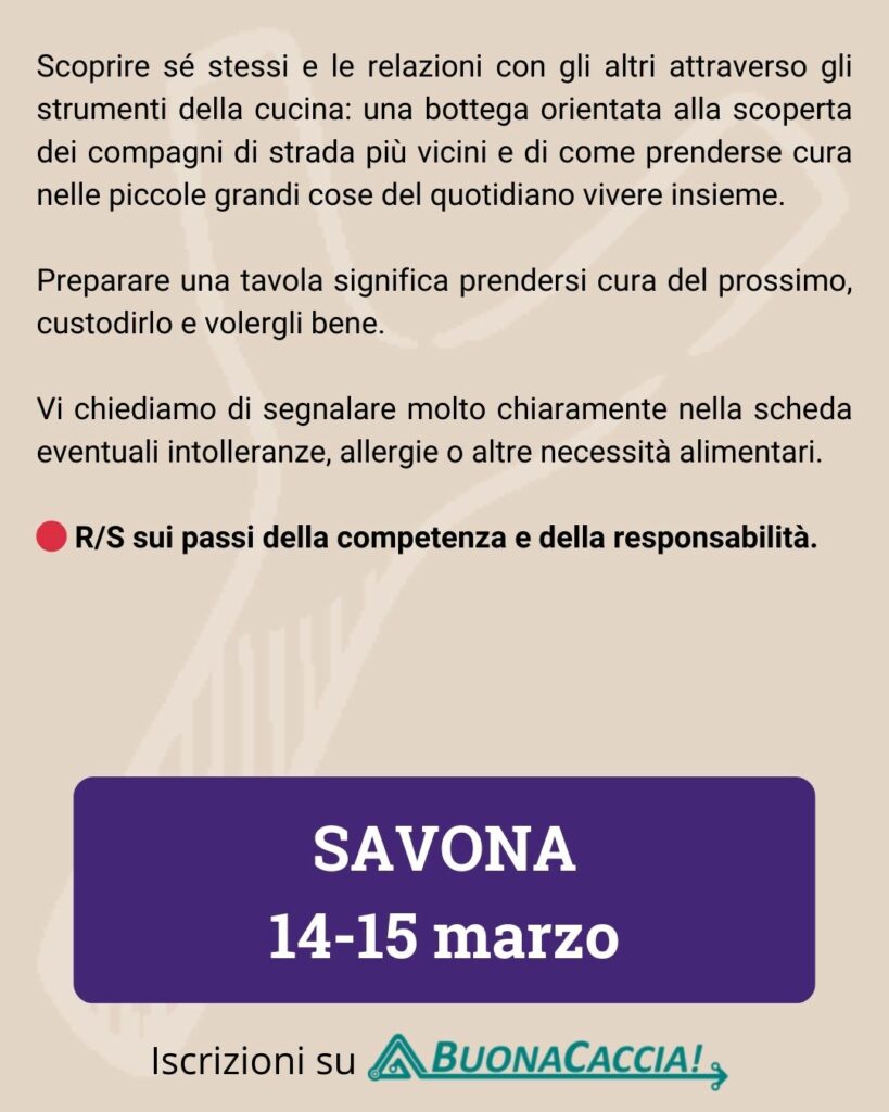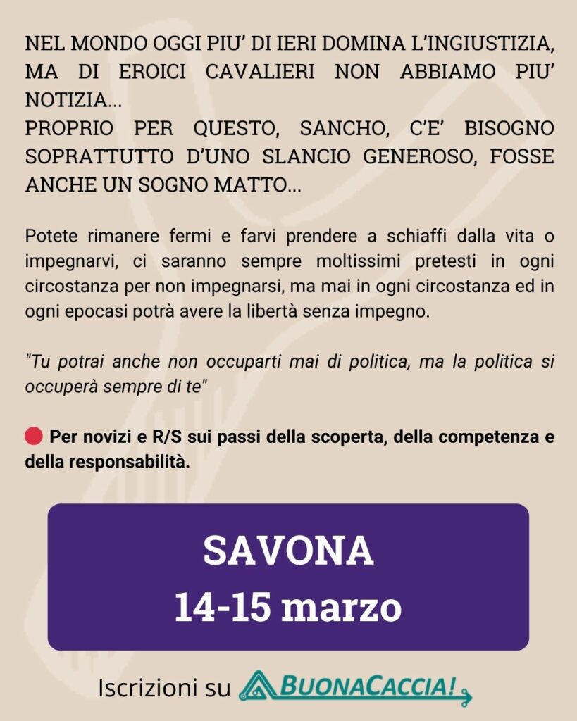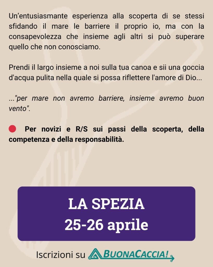 Per chi? Ogni evento è pensato per specifici momenti della tua strada: dai passi di scoperta (noviziato), a quelli di competenza e responsabilità. Scegli quello giusto per te!